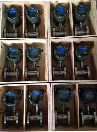 渦輪流量計原理是感應線圈和永久磁鐵一起固定在殼體上。當鐵磁性渦輪葉片經過磁鐵時,磁路的磁阻發生變化,從而產生感應信號。信號經放大器放大和整形,送到計數器或頻率計,顯示總的積算流量。同時將脈沖頻率經過頻率-電壓轉換以指示瞬時流量。渦輪流量計的葉輪的轉速正比于流量,葉輪的轉數正比于流過的總量。渦輪流量計的輸出是頻率調制式信號,不僅提高了檢測電路的抗干擾性,而且簡化了流量檢測系統。它的量程比可達10:1,精度在±0.2%以內。慣性小而且尺寸小的渦輪流量計的時間常數可達0.01秒。