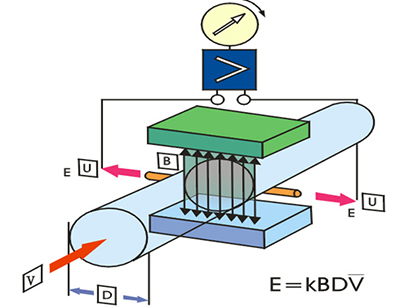 ,則可以證明,只要管道內流速分布為與軸對稱分布,則兩電極間將產生感生電勢