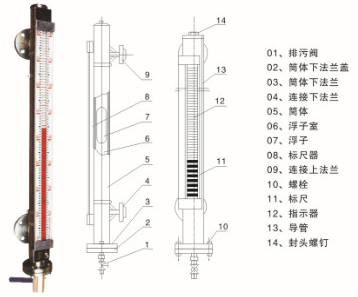 6.調試時應先打開上部引管閥門,然后緩慢開啟下部閥門,讓介質平穩進入主導管(運行中應避免介質急速沖擊浮子,引起浮子劇列波動,影響顯示準確性),觀察磁性紅白球翻轉是否正常,然后關閉下引管閥門,打開排污閥,讓主導管內液位下降,據此方法操作三次,確屬正常,即可投入運行(腐蝕性等特殊液體除外);