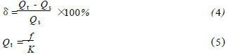 將過熱蒸汽流量計在標準水裝置上,分別用頻譜分析和脈沖計數(shù)的方法進行標定,流體介質(zhì)為水未加氣體,采用的標準傳感器為精度等級為0.2級的電磁流量計。在每個流量測量點上的儀表系數(shù)用公式(1)計算,然后用式(2)計算得到*終儀表系數(shù)K。Ql為被測水的流量值,f為每一個流量點得到的頻率,k為每個測量點得到的儀表系數(shù)。kmax、kmin分別為試驗流量范圍內(nèi)得到的*大與*小的儀表系數(shù)。儀表系數(shù)的線性度E1用式(3)來計算。