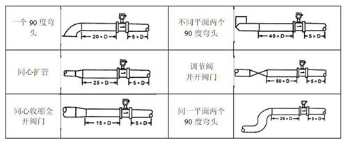 安裝要求:規范對高溫蒸汽流量計的安裝要求比較多,除了對高溫蒸汽流量計的前后直管段的要求如圖,