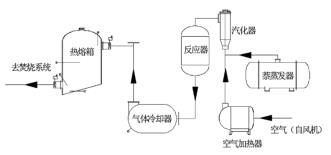 以原料萘為例。萘由原料儲罐經(jīng)液萘泵加壓后進入萘蒸發(fā)器,液萘在萘蒸發(fā)器內(nèi)由中壓蒸汽加熱汽化分離,經(jīng)流量調(diào)節(jié)閥、流量計和氣萘切斷閥后進入汽化器;空氣經(jīng)風(fēng)機加壓后,經(jīng)空氣加熱器加熱后進入汽化器,氣萘和空氣在汽化器內(nèi)混合均勻后進入氧化反應(yīng)器上部,經(jīng)催化床層發(fā)生氧化反應(yīng)生成苯酐和少量的副產(chǎn)物(以順酐、苯甲酸、萘醌、和鄰苯二甲酰亞胺為主);反應(yīng)氣體經(jīng)智能型渦街流量計冷卻后再進入切換冷凝器進行凝華捕集,少量未被捕集的有機物和不凝氣體經(jīng)尾氣管路進入蓄熱焚燒裝置焚燒處理,焚燒后的尾氣達標(biāo)排放。